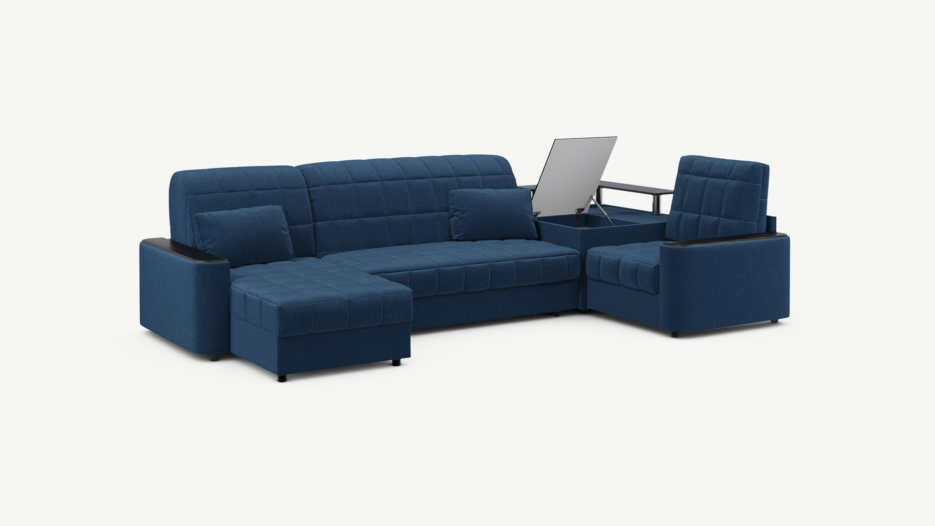 Выбирая угловой диван со столиком, Вы сможете проводить время с максимальным комфортом, многократно повысив функциональность дивана. Все дело в том, что под столешницей модуля расположена вместительная емкость для хранения. Кроме того, поверхность столика — идеальное пространство для чаепития в приятной компании, а также место для множества актуальных мелочей — от ноутбука до косметики.