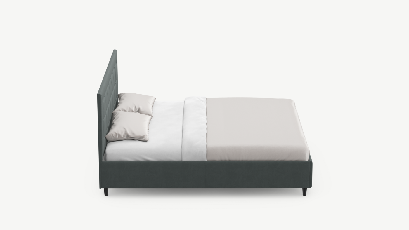 Стежка помещена в центр изголовья и обрамлена, словно картина. Объемные царги становятся гармоничным дополнением образа и завершают цельную фигуру кровати.