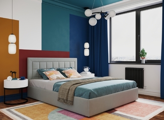 Фактура обивочного материала подбирается дизайнерами с учетом технологических и стилевых особенностей кровати.