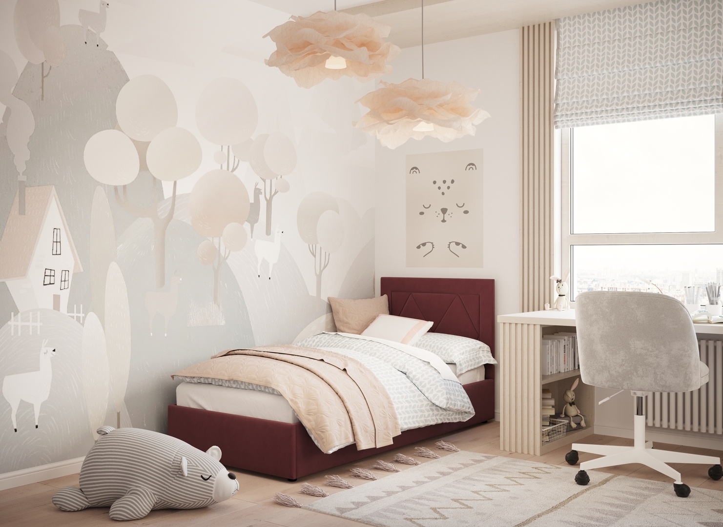 Фактура обивочного материала подбирается дизайнерами с учетом технологических и стилевых особенностей кровати.
