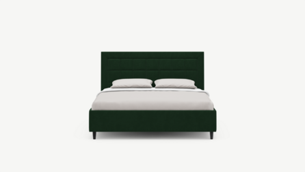 Стежка помещена в центр изголовья и обрамлена, словно картина. Объемные царги завершают цельную фигуру кровати и становятся гармоничным дополнением ее образа.