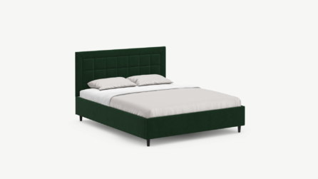 Изголовье декорировано рельефным рисунком стежки в крупный квадрат, получившим особую фактуру за счет глубины шва.