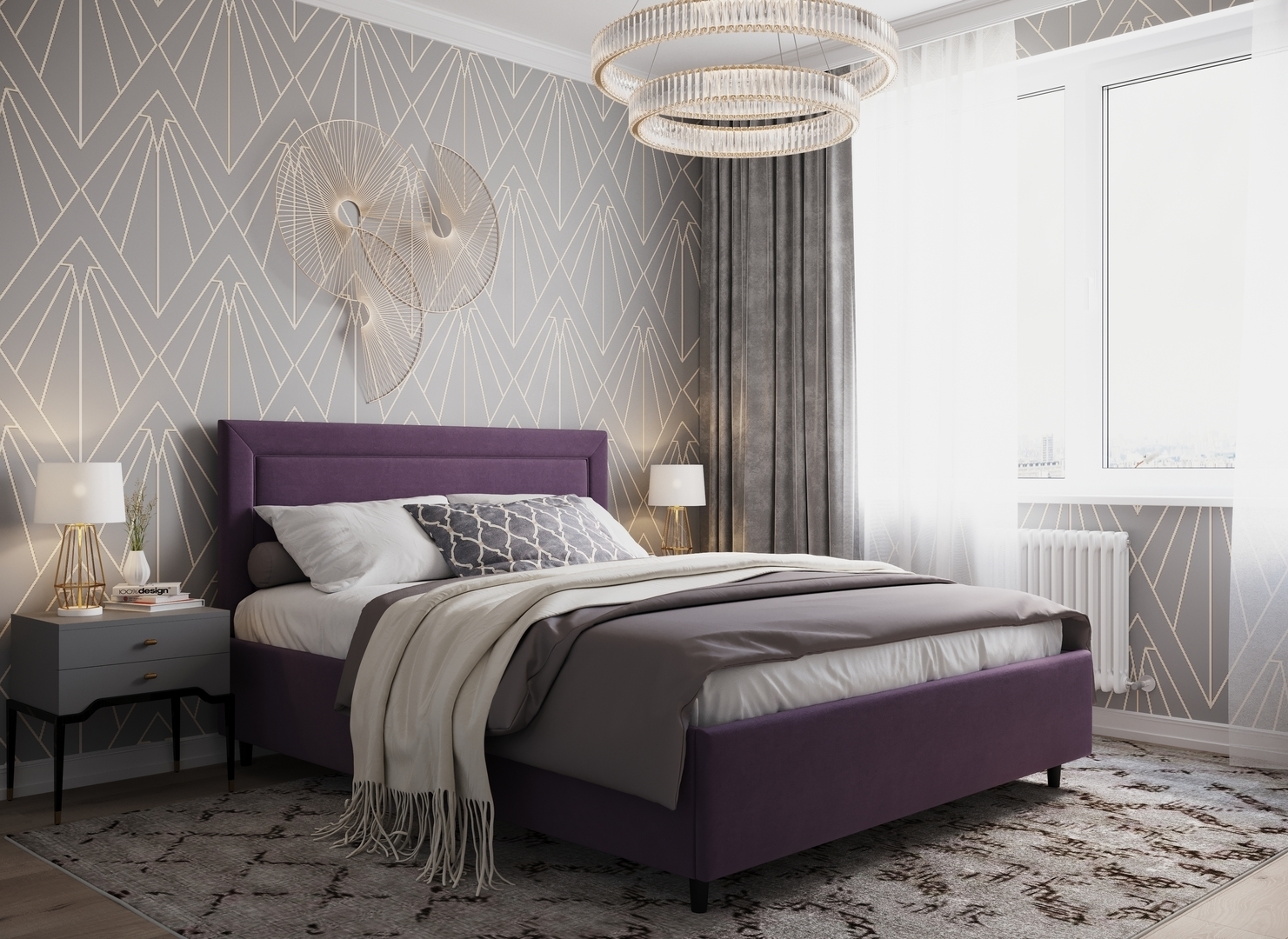 Создать гармоничный интерьер и завершить образ спальни помогут дополнительные аксессуары, например: тумбы, банкетки, подушки.