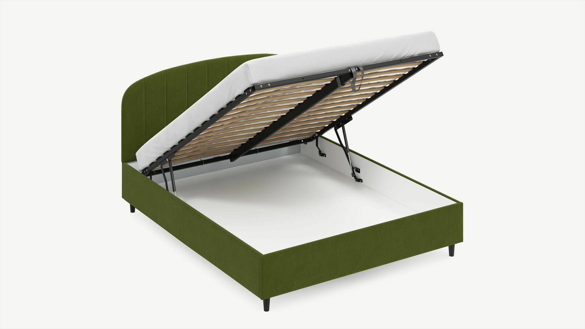 • Скрытая под основанием вместительная емкость без внутренних перегородок позволяет использовать всю площадь подкроватного пространства для хранения вещей.