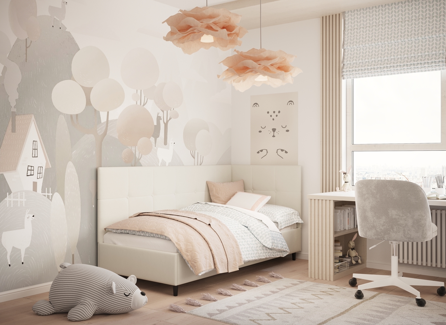 MOON FAMILY 1261 объединяет функциональность и стиль, создавая гармоничное пространство для отдыха и творчества. Кровать доступна в левостороннем и правостороннем исполнении, что позволяет легко адаптировать ее под любые интерьерные особенности.