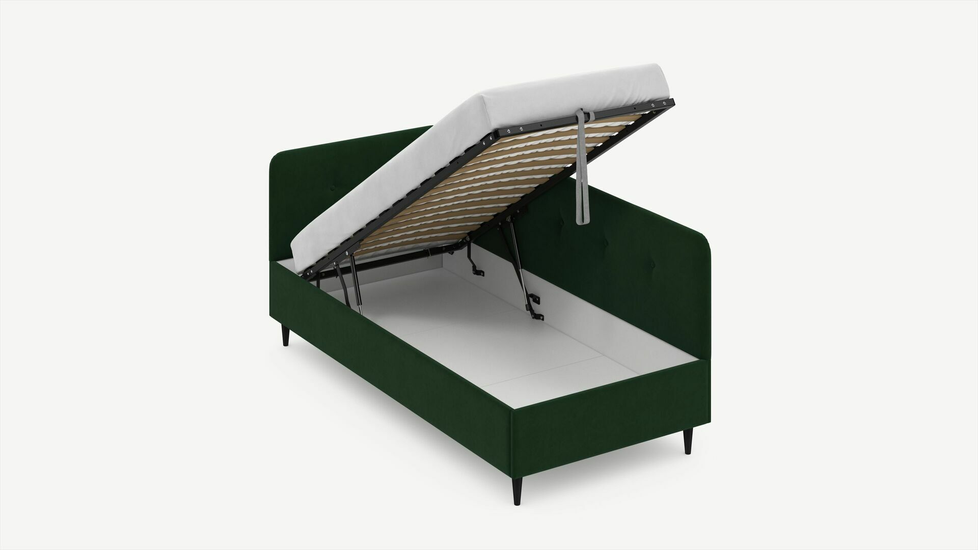 • Скрытая под основанием вместительная емкость без внутренних перегородок позволяет использовать всю площадь подкроватного пространства для хранения вещей.