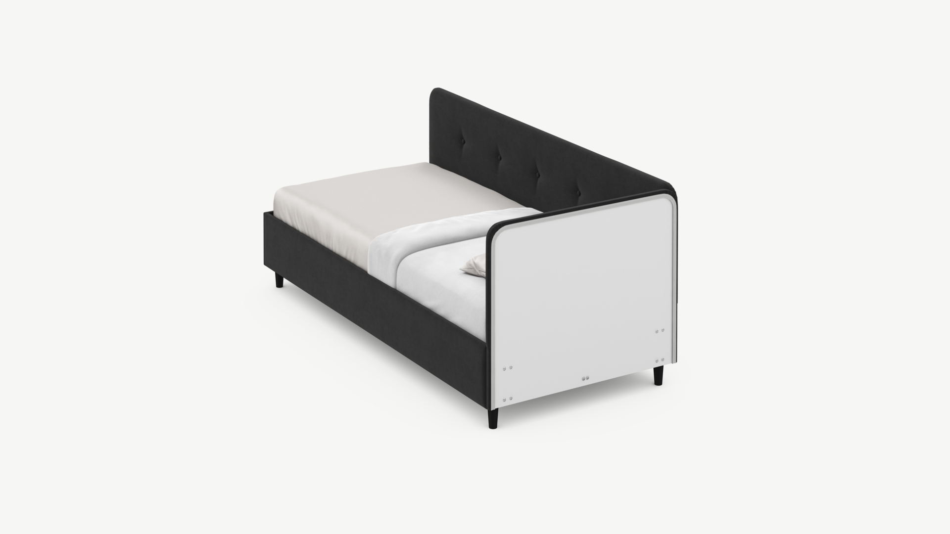 Кровать угловая с подъемным механизмомУгловая односпальная кровать MOON FAMILY 1253 с мягкой спинкой и изголовьем обладает округлыми формами, привносящими в интерьер нотки нежности. Изголовье, украшенное пуговицами, добавляет окружающему пространству шарм и уют. Высокие опоры придают кровати визуальной легкости, а также обеспечивают удобство во время уборки.
