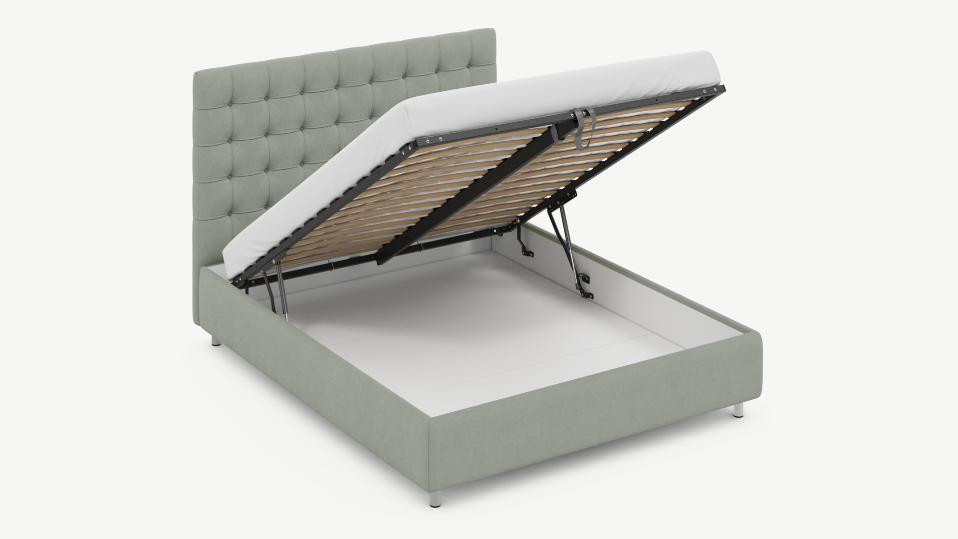 - Скрытая под основанием вместительная емкость без внутренних перегородок позволяет использовать всю площадь подкроватного пространства для хранения вещей.