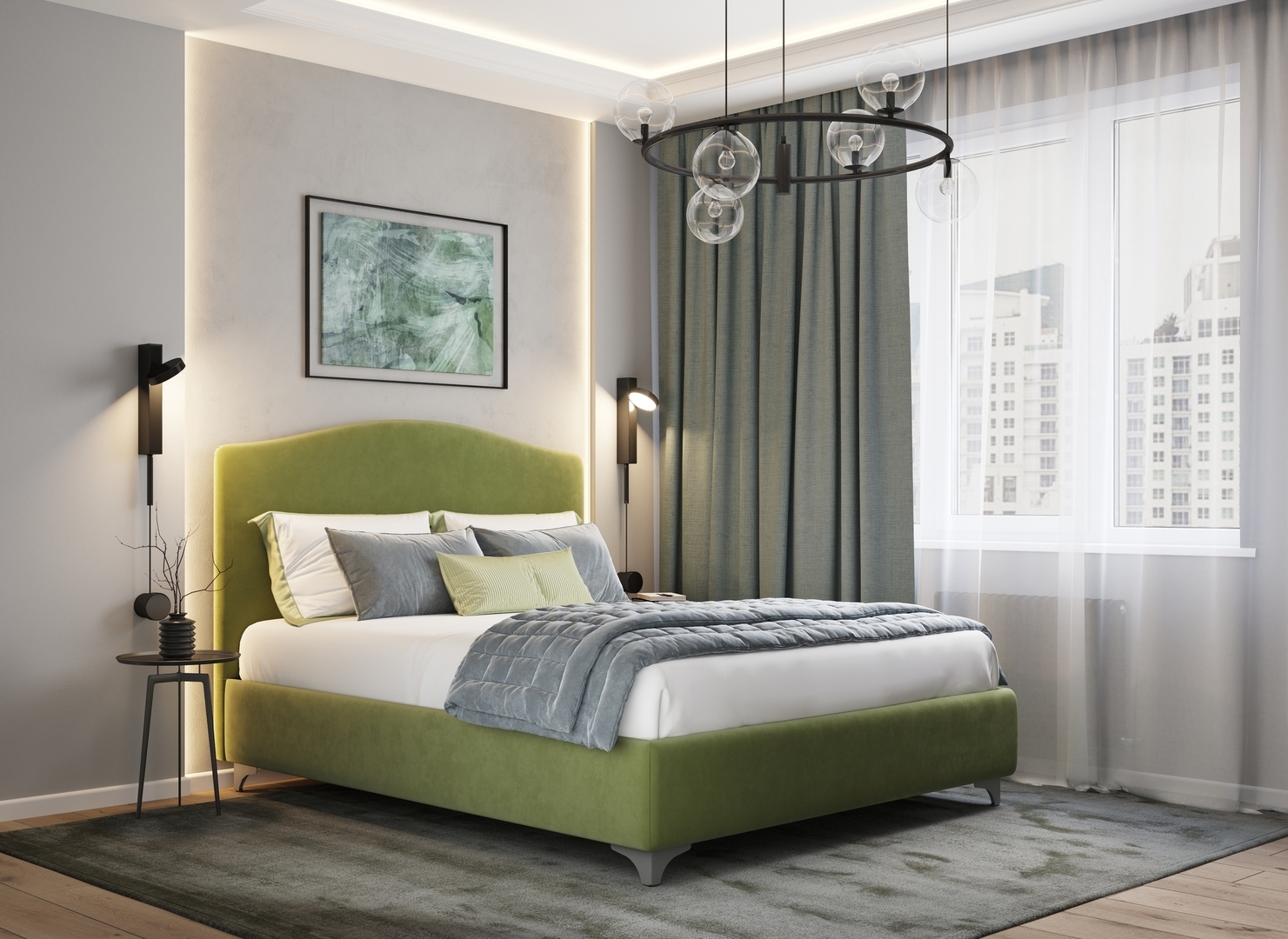 Разнообразие цветовой палитры позволит подобрать желаемый оттенок обивочного материала. Использование светлых цветов поддержит настроение стиля «Сканди». Нейтральные оттенки в цвет интерьера обыграют спальню в Современном стиле.